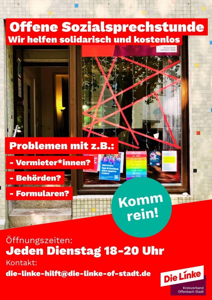 Bundesweit engagieren sich in rund 90 Kreisverbänden der Linken Mitglieder in Sozialsprechstunden. Die Offenbacher Sprechstunde ist Teil dieser Initiative, die Menschen unabhängig von Herkunft, Einkommen oder Lebenssituation helfen will – unbürokratisch, solidarisch und vertraulich.