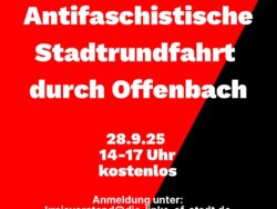 Der Kreisverband der Partei Die Linke Offenbach-Stadt hat einen neuen Vorstand: Magdalena Depta-Wollenhaupt und Nils Schlesinger wurden auf der Kreismitgliederversammlung am Samstag, den 27.09.2025 einstimmig zu den neuen Co-Vorsitzenden gewählt. Markus Philippi wurde als Schatzmeister bestätigt. Daniela Khanh Duyen Tran, Refika Cömert, Gizem Erinç-Çiftçi, Fabian Fusenich und Jakob Hofmann komplettieren als Beisitzer*innen den achtköpfigen Vorstand Weiterlesen …